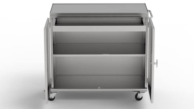 A lockable, mobile storage unit that is as secure as it is durable with safe storage for equipment and ability to withstand chemical attacks