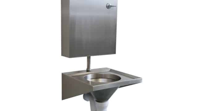 A modern, sleek, wall mounted wash basin designed with simplicity and efficiency