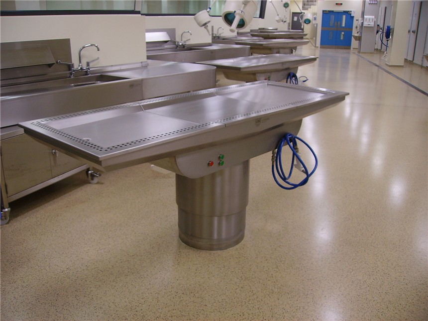 In addition, to support the teaching process, the Surgical Skills Table surface is designed to easily rotate through a range of 180°, with a brake securing the selected angle. Equipment is easy to clean, with a gradient fall on the worktop panels to allow for drainage. The worktops are removable, enabling a simple cleaning procedure of the sump and worktops.