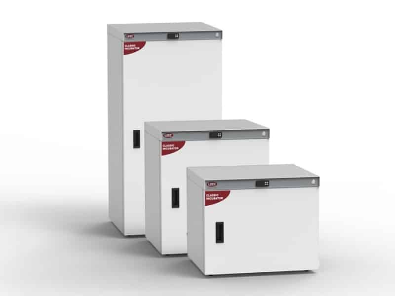 leec-classic-incubatorsLEEC Classic incubators are available in 3 sizes: 100 litres (C100), 157 litres (C157) and 330 litres (C330). They all feature the impeccable construction and quality you would expect from a LEEC product. All Classic incubators have fully sealed chambers manufactured from polished stainless steel with rounded corners for easy cleaning. The outer cabinet is manufactured from stainless steel and has a tough polyester powder coated paint finish. An inner glass door closes positively onto a silicone gasket, for a clear view of the chamber contents without disturbing the internal atmosphere. A 12mm access port at the rear allows temperature monitoring probes / cables to be inserted safely into the chamber for datalogging or validation.