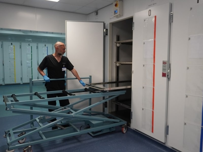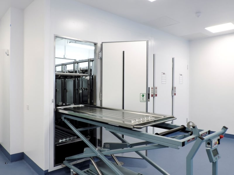 The Refrigerated Body Storage Cabinet can be used by a single operator and features labour efficiency and manual handling techniques. A well designed unit that’s been specifically tailored to physically support the operator as well as improve dignity for the deceased within a mortuary setting.