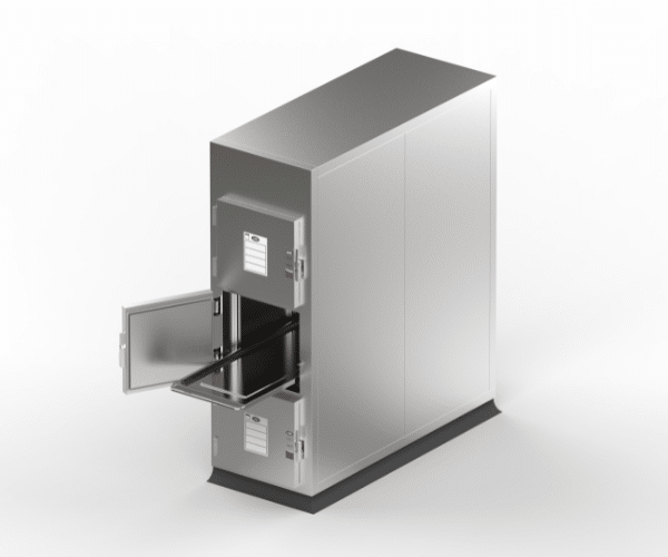 A Refrigerated Body Storage Cabinet is a fully insulated unit designed to support coffins or body trays. The internal structure consists of open stainless steel racking allowing for an even temperature throughout the cabinet and easy access for practicality and cleaning.